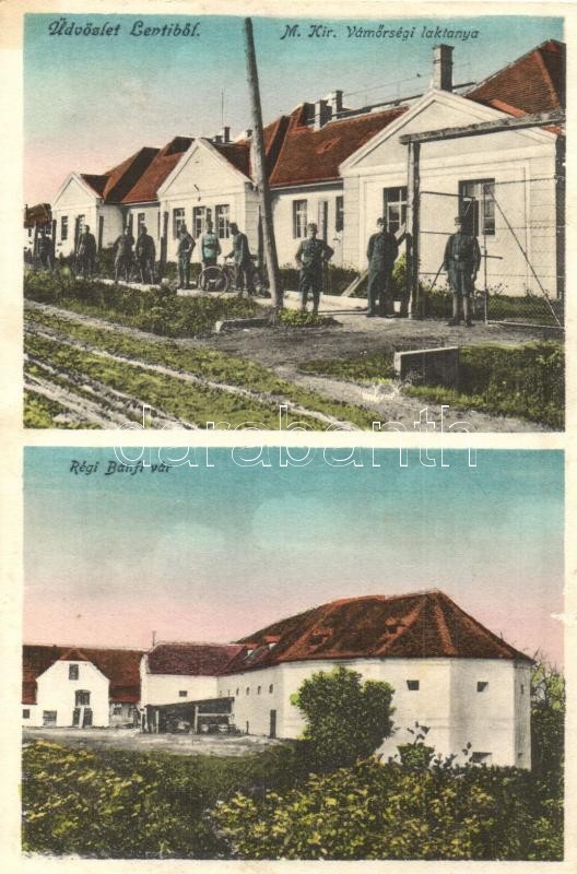 Lenti, M. kir. Vámőrségi laktanya katonákkal, Régi Bánfi vár. Csánk Ferenc kiadása