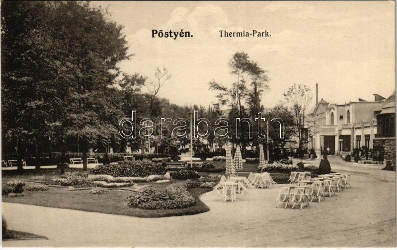 Pöstyén, Pistyán, Piestany; Thermia park. Lampl Gyula kiadása / hotel ...