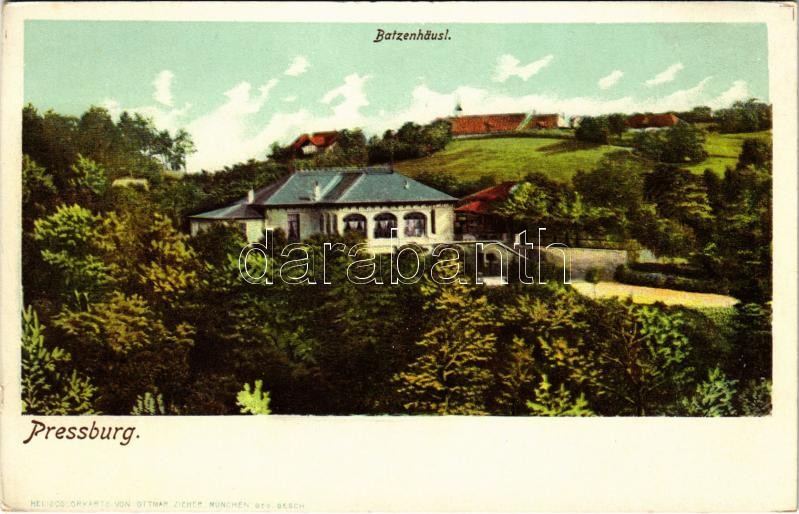Pozsony, Pressburg, Bratislava; Batzenhäusl. Heliocolorkarte von Ottmar Zieher / Bimbóház étterem / restaurant