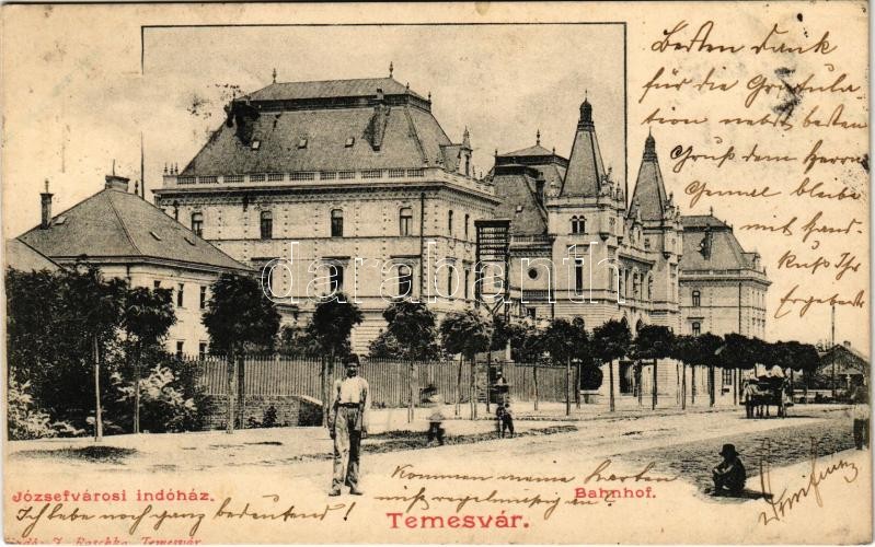 1901 Temesvár, Timisoara; Józsefvárosi indóház, vasútállomás. J. Rasch...
