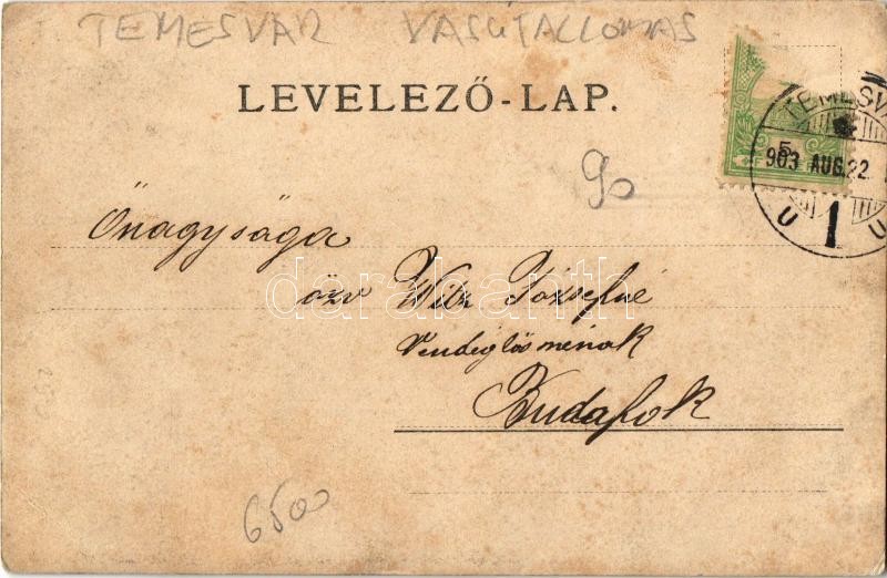1903 Temesvár, Timisoara; Dalünnepély, vasútállomás / song festival, c...