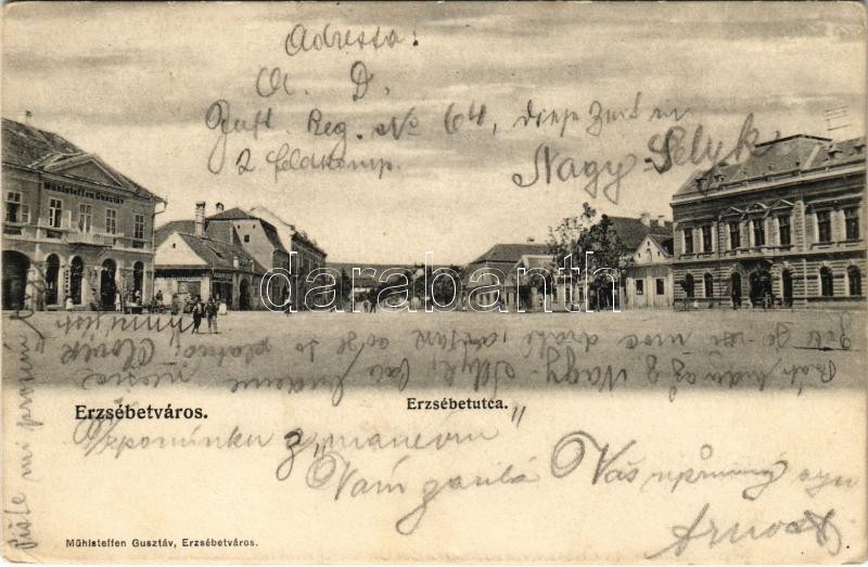 1907 Erzsébetváros, Dumbraveni; Erzsébet utca, Mühlsteffen Gusztáv üzl...