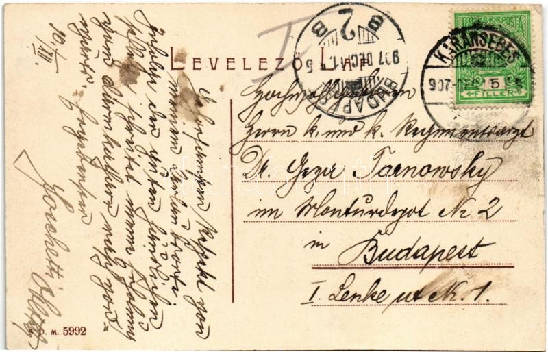 1907 Karánsebes, Caransebes; Katonai kórház, lovaskocsik / Spitalul mi...