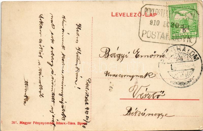 1910 Poklostelek, Poclusa de Barcau (Bihar); községháza, utca, templom...