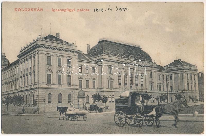 https://www.darabanth.com/en/38-Major-auction/38.1/Postcards/Transylvania~15646/1919-Kolozsvar-Cluj-Igazsagugyi-palota-lovashinto-financial-palace-horse-chariot-Rb~II2614305