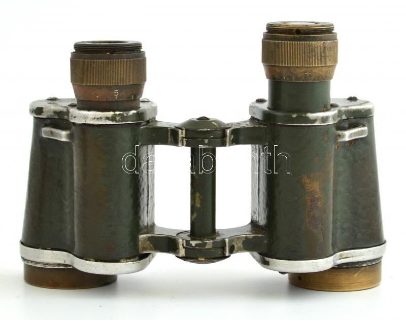Háborús, német célkeresztes távcső bőr tokban, 10,5x15 cm