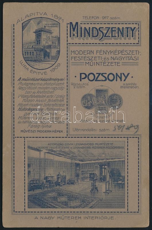 cca 1910 A pozsonyi Mindszenty Béla fényképész új műtermének külső és... https://www.darabanth.com/en/380-Online-auction/380.0/Photography/Photo~20/cca-1910-A-pozsonyi-Mindszenty-Bela-fenykepesz-uj-mutermenek-kulso-es-Belso-fametszetes-~II2254157