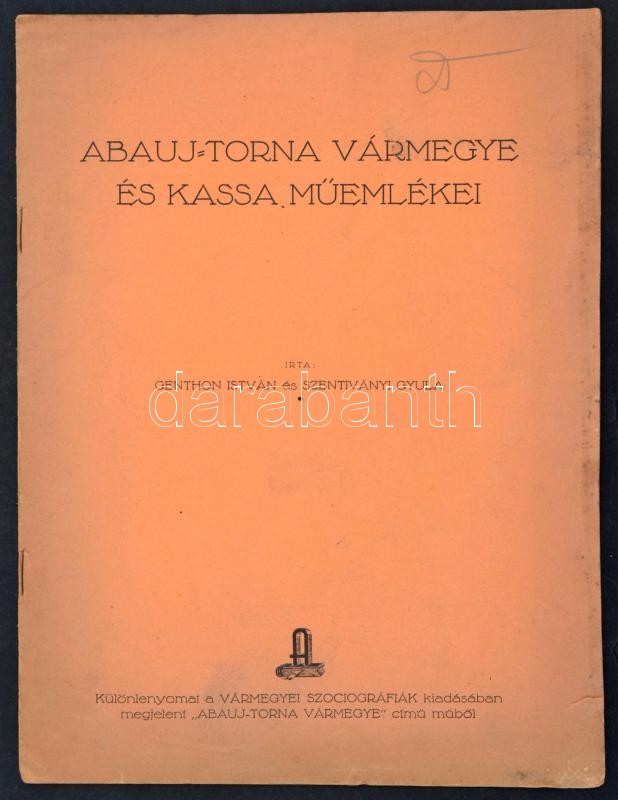 https://www.darabanth.com/en/381-Online-auction/381.0/Art-and-other-collectibles/Printed-Materials~500036/cca-1930-Genthon-Istvan-Abauj-Torna-varmegy-e-es-Kassa-muemlekei-Kulonlenyomat-14p-Kepekk~II2031305