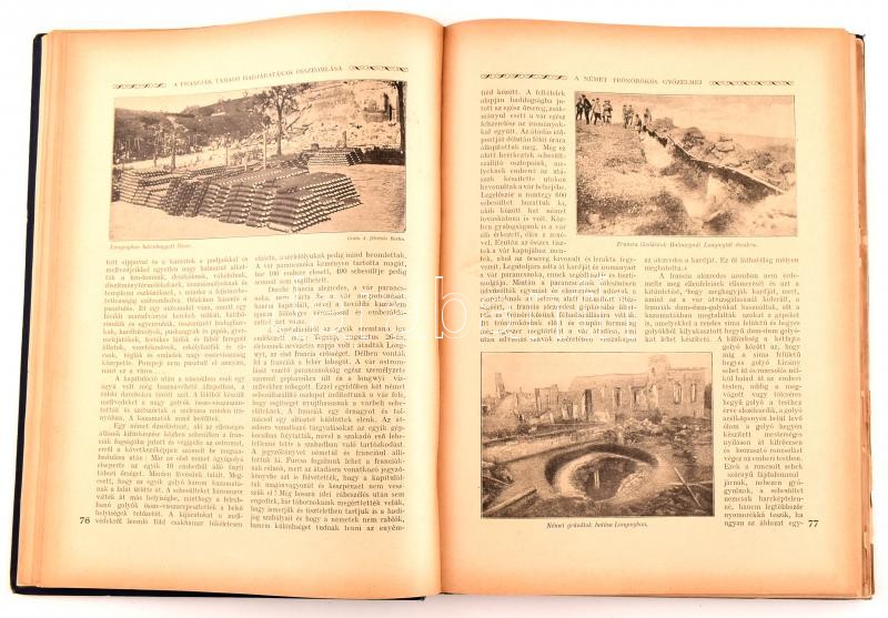 A Nagy Háború írásban és képben.összesen 6 kötet I-IV. kötet. Második rész: A nyugati hadszíntér I-II. kötet. Harmadik rész: Az olasz háború. Szerk.: Lándor Tivadar. Bp.,(1915-1926), Athenaeum. Rendkívül gazdag képanyaggal. Számos színes és fekete-fehér, részben kihajtható táblával, melléklettel, térképpel, több száz szövegközti képpel, térképvázlattal, rajzzal illusztrálva. Kiadói illusztrált, aranyozott egészvászon-kötésben, többnyire kopott borítóval, és gerinccel, a nyugati hadszíntér II. kötetének a gerince sérült, hiányos, kijáró lapokkal, illusztrációkkal, megviselt állapotban.