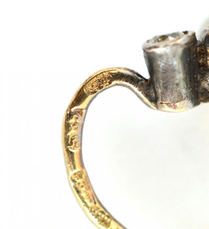 Arany (Au) 14K fülbevaló pár, sárga és fehér kövekkel, jelzettek, tokb...