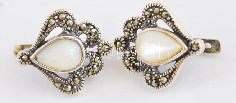 Ezüst(Ag) fülbevalópár, gyöngyház díszítéssel, jelzett, 2,5×2 cm, brut...