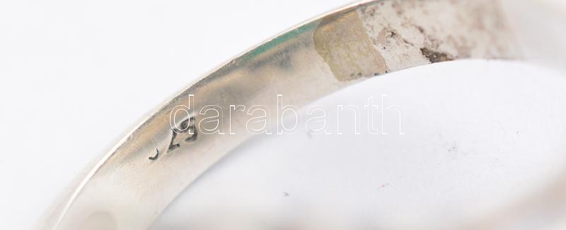 Ezüst(Ag) gyűrű, szintetikus zöld kővel és markazittal, jelzett, méret...