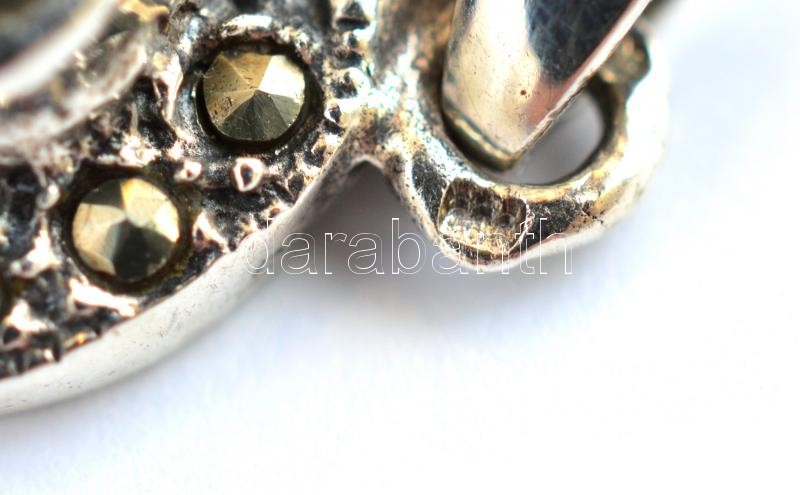 Ezüst(Ag) markazit és ónix kövekkel díszített szív alakú medál, jelzet...