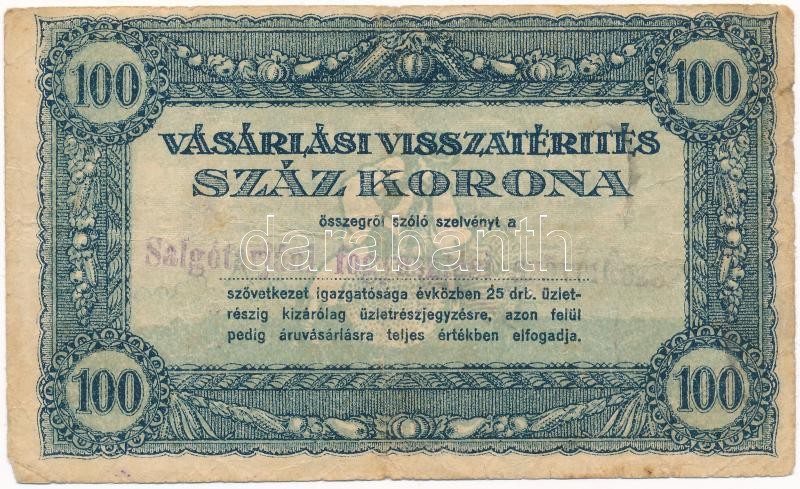 ~1920. 100K "Vásárlási visszatérítés" rajta "Salgótarjáni Fogyasztási Szövetkezet" bélyegzéssel T:III