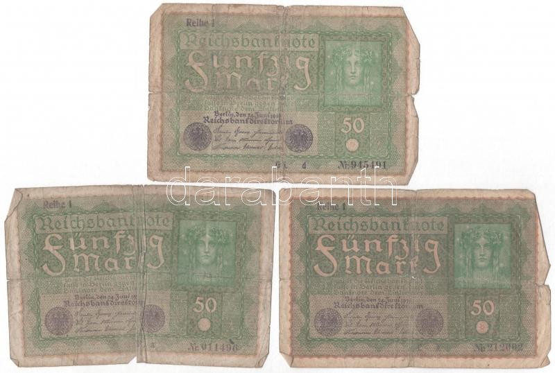 https://www.darabanth.com/en/381-Online-auction/381.0/Numismatics/Worldwide-banknotes~2000013/Nemet-Birodalom-1919-50M-3x-TIII-III--German-Empire-1919-50-Mark-3x-CF-VG-Krause2366~II2197288