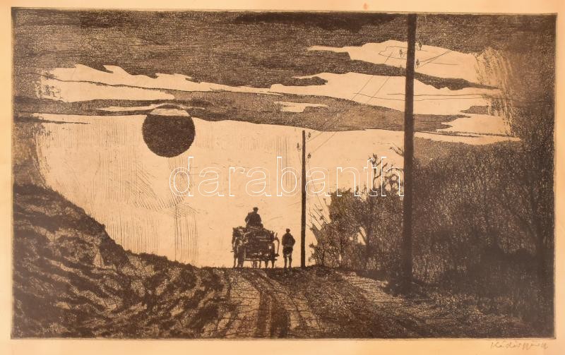 Kádár György (1912-2002): Hazafelé. Rézkarc, papír, jelzett. Lap hullá...