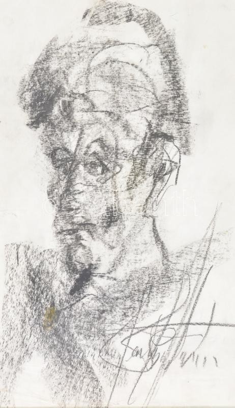 Olvashatatlan jelzéssel: Férfi portré. Szén, papír, üvegezett klipsz k...