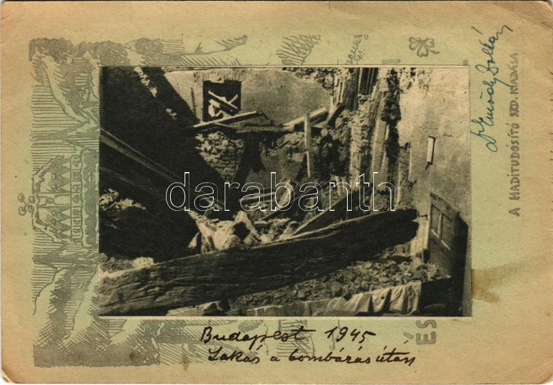 Tábori Postai Levelezőlap. Rajta ragasztott kép "Budapest, 1945. ... https://www.darabanth.com/en/381-Online-auction/381.0/Postcards/Militaria~1500059/Tabori-Postai-Levelezolap-Rajta-ragasztott-kep-Budapest-1945-Lakas-a-bombazas-utan-felir~II2258821