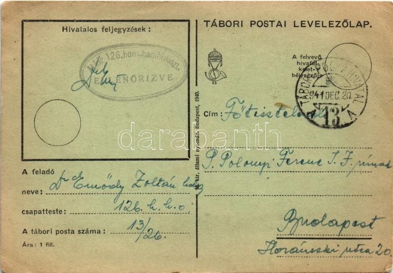 Description: Tábori Postai Levelezőlap. Rajta ragasztott kép "Budapest, 1945. Lakás a bombázás után" felirattal / WWII Hungarian military field postcard. picture glued on the postcard with caption "Apartment after the bombing. Budapest, 1945" (EB)
