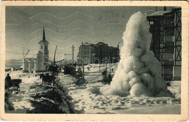 1931 Újtátrafüred, Neu-Schmecks, Novy Smokovec (Tátra, Vysoké Tatry); szkőkút téeln / fountain in winter (EK)
