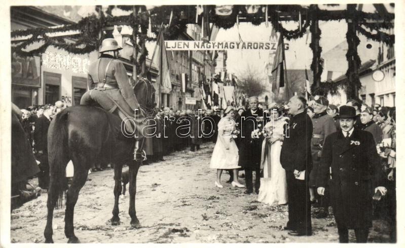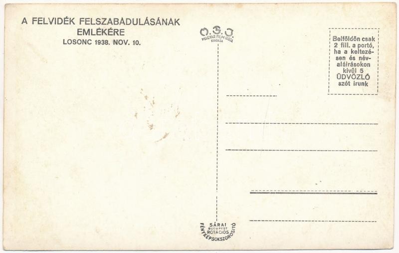 1938 Losonc, Lucenec bevonulás "Éljen Magyarország!" díszkap...