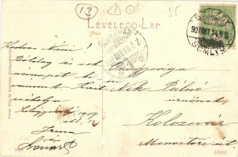 Szilágysomlyó, Simleu Silvaniei; Római katolikus gimnázium, Vágó Antal üzlete. W. L. (?) 2309. Veres Károly kiadása / Catholic school, shop (EK)