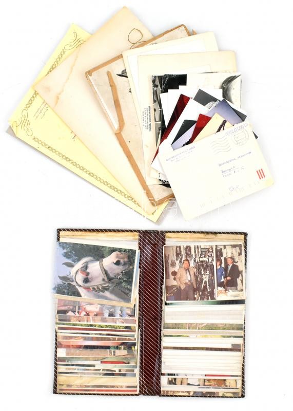 Bősendorfer Ferenc (1931-2008) bőrdíszműves, népi iparművész hagyatéka, rengeteg fotó, nagyobb részük mappában, egy levél, Bősendörfer Ferenc névjegykártyája, a népi iparművészeti termékek együttes védjegyének szervezeti- és működési szabályzata, kiállítási meghívó, és egy emléklap.