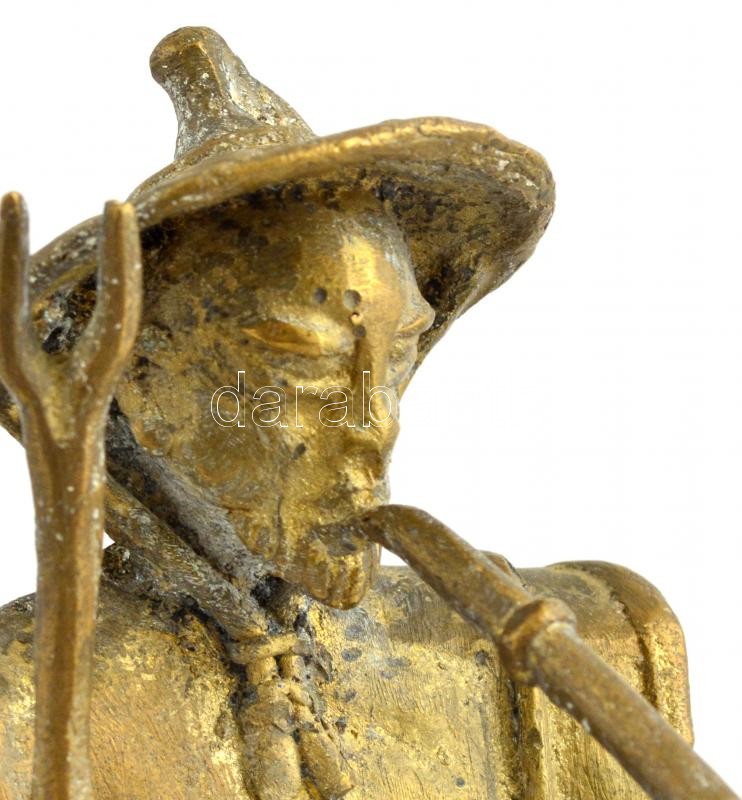 Pipázó pásztor, festett fém szobor, jelzés nélkül, m: 35 cm