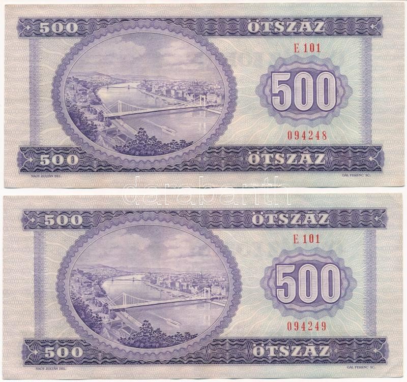 1975. 500Ft (2x, sorszámkövető: "E101 094248", "E101 094249") T:III sz...