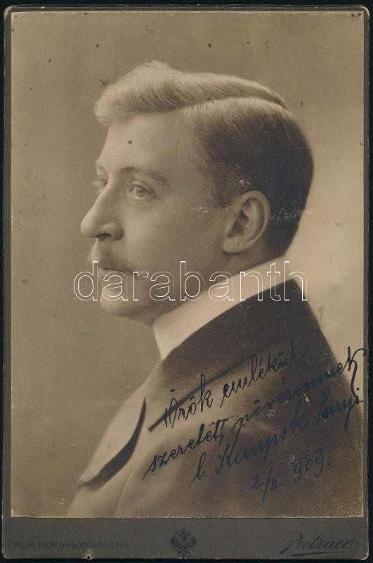 1903-1904-1909 Lovag rakoszyni Kempski János 3 db fotója, keményhátú fotók, Arad, Kossak József (2 db) és Wien, C. Pietzner műtermeiből, kettő a hátoldalán feliratozva, egy fotó Kempski János által dedikált a nővérének, kettő kopott, a felületükön folttal, 21x13 cm és 16x11 cm közötti méretben