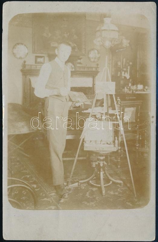 1920 Festőművész festés közben, fotólap, 9x14 cm