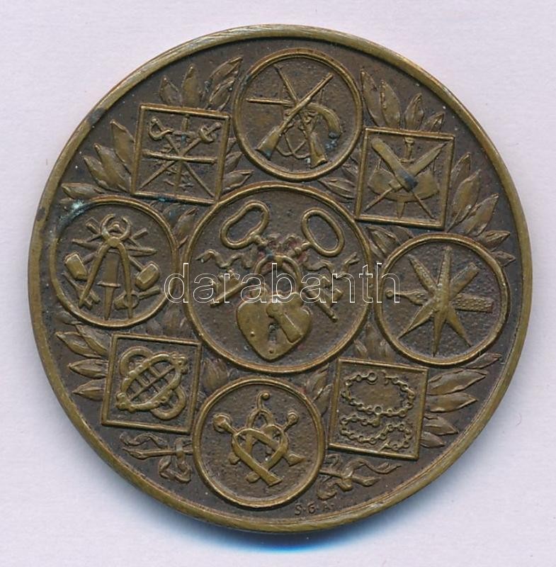 ~1910 "Jeles ipari munkáért" kétoldalas Br érem "Jeles ipari munkáért a szorgalom jutalmazása - A budapesti egyesült lakatos, puskaműves, késes, reszelővágó, lánczkovács, sarkantyus, csattos, szerkovács, kardműves stb. ipartestület" (32mm) T:1-,2
