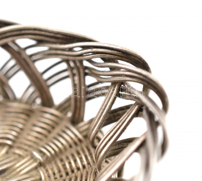 Ezüst(Ag) miniatűr fonott kosár, jelzés nélkül, 5×3 cm, nettó: 12,66 g