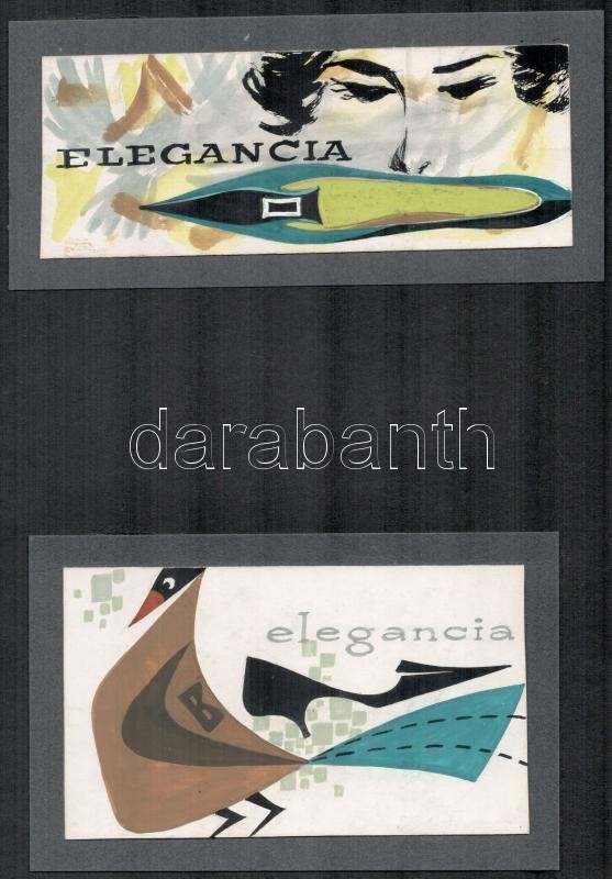 cca 1970 Elegancia cipőbolt 2 db kézzel festett reklámja, kartonra kasírozva, szép állapotban, 7,5×12,5 cm
