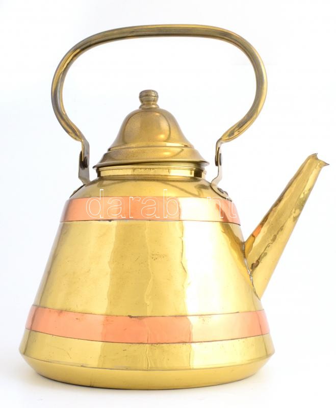 Nagy méretű belga réz kanna, jelzett, kopásnyomokkal, m: 33 cm