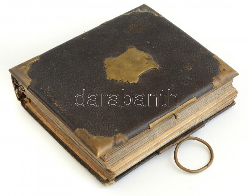 XIX. sz vége: fotóalbum vizitkártyák számára bőr borítással, réz kapoccsal, kissé megviselt állapotban 20x25 cm
