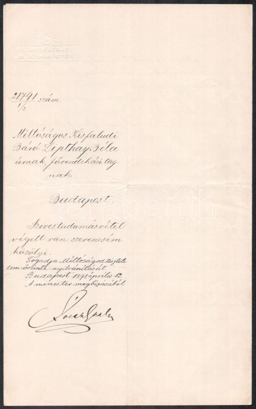 1895-1899 Tátralomnici vonatkozású iratok gyűjteménye: báró Lipthay Bé... https://www.darabanth.com/en/385-Online-auction/385.0/Art-and-other-collectibles/Historical-documents-manuscripts~1000018/1895-1899-Tatralomnici-vonatkozasu-iratok-gyujtemenye-baro-Lipthay-Bela-birtokakent-funkci~II2306026