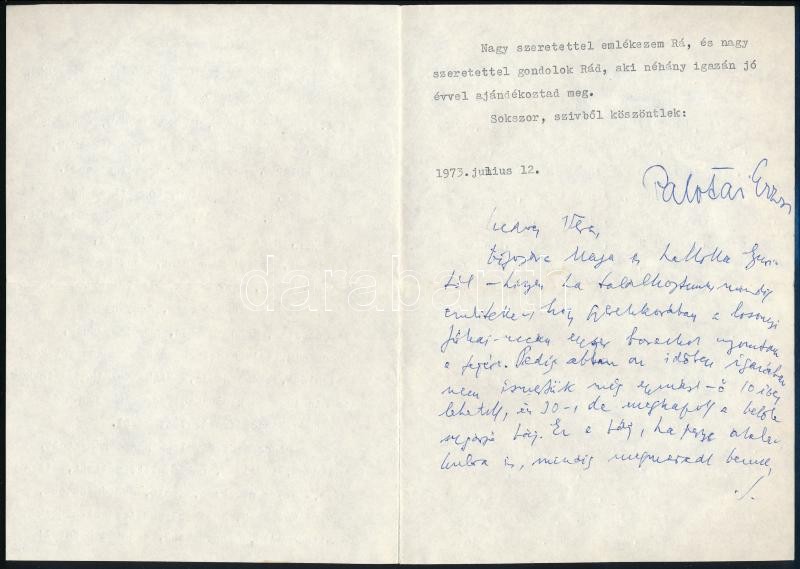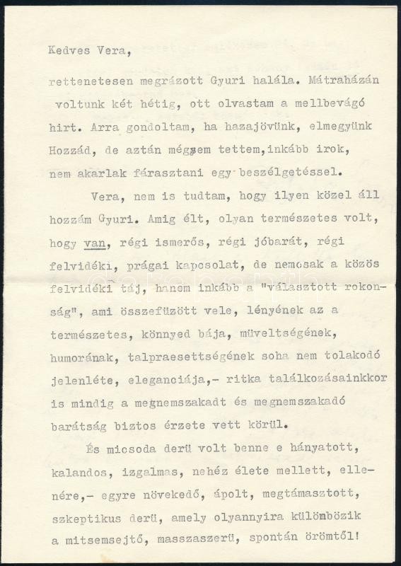1973 Palotai Erzsi (1907-1988) író gépelt részvétnyilvánító sorai, alá... https://www.darabanth.com/en/385-Online-auction/385.0/Art-and-other-collectibles/Historical-documents-manuscripts~1000018/1973-Palotai-Erzsi-1907-1988-iro-gepelt-reszvetnyilvanito-sorai-alairasaval-es-ferj~II2300267