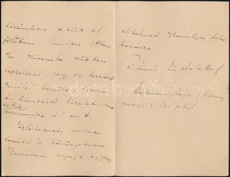 Hatvany Lajos (1880-1961) író, kritikus, irodalomtörténész, Kossuth-díjas, az MTA tagja; "az utolsó mecénás", autográf levele. Mélyen tisztelt Uram! megszólítással Gerő Ödön (1863-1939) műkritikusnak. "A könyvkritika, így tanultam ezt Gyulay Pálnál, a közönség felvilágosítása oly munka felől melyet a kritikus figyelemre méltónak talál, akár kitűnősége, akár tökéletlensége folytán. A szerzőnek ebbe dologba semmi beleszólása nincs..." de mégis megköszöni a könyvéről írt kritikát és nagyrabecsüléséről biztosítja. 7 beírt oldal.