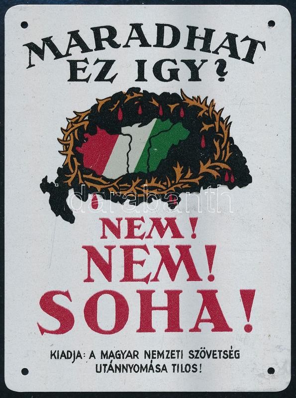 https://www.darabanth.com/en/385-Online-auction/385.0/Art-and-other-collectibles/Historical-documents-manuscripts~1000018/cca-1930-Maradhat-ez-igy-Nem-nem-soha-Magyar-Nemzeti-Szovetseg-irredenta-fem-tabla-kis-d~II2298227