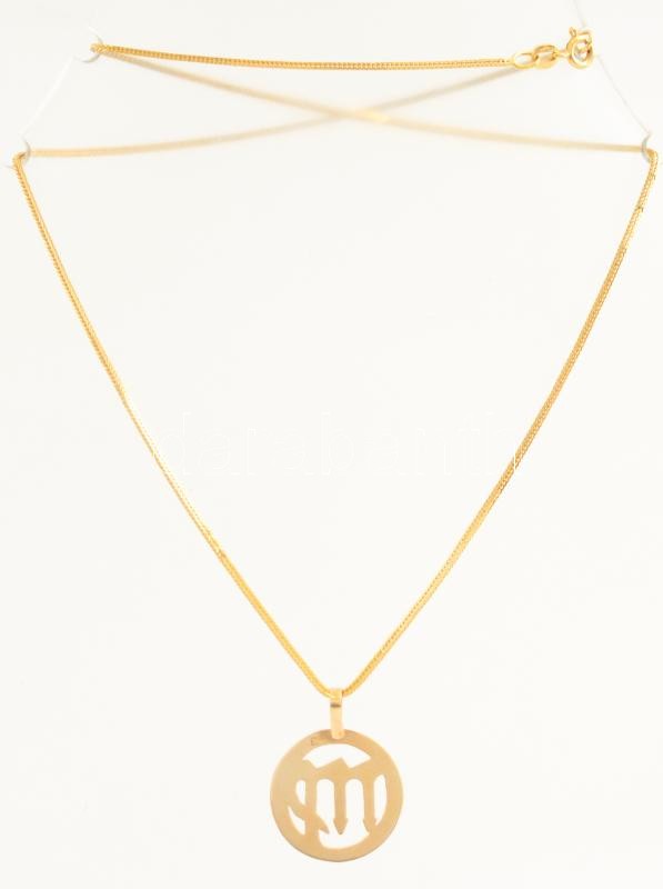 14 K arany (Au), nyaklánc, 14K szűz medállal jelzettek, 3,7 g, 44 cm