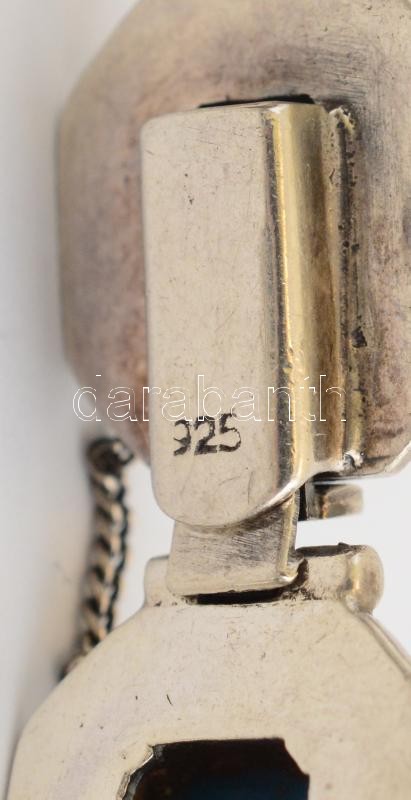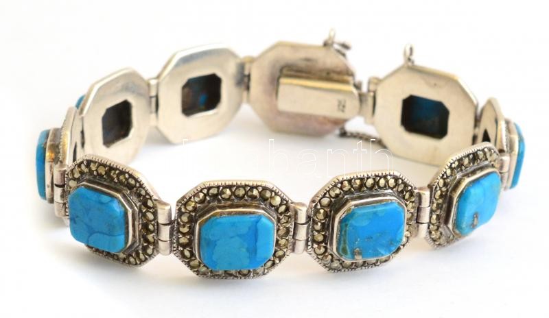 Ezüst (Ag) karkötő türkizzel és markazitokkal, jelzett, h: 19 cm, bruttó: 37,73 g