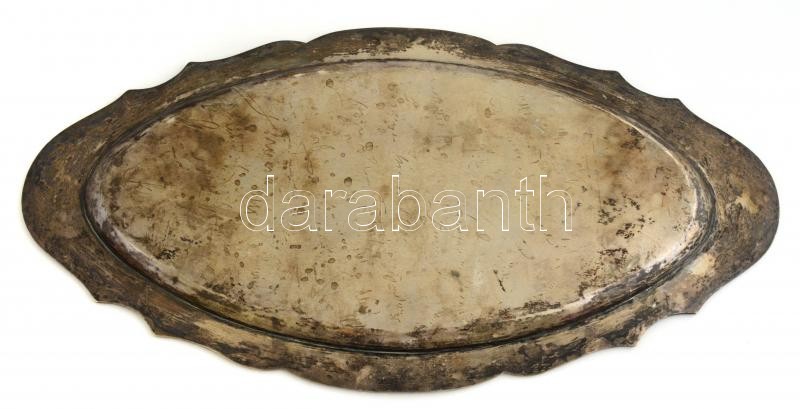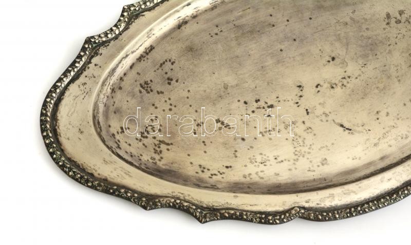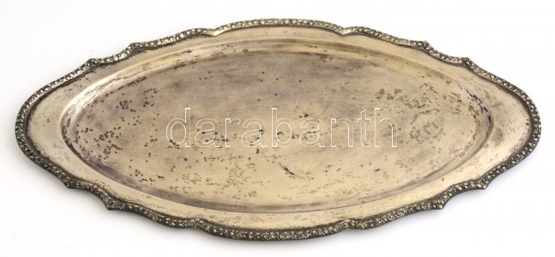 Ezüst (Ag) virág motívumos tálca, jelzettt, kopásokkal, 21,5x41 cm, nettó: 441 g