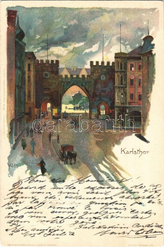 1899 (Vorläufer) München, Munich; Karlsthor / gate. Velten's Künstlerpostkarte No. 90. litho s: Kley