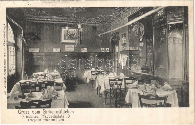 1911 Berlin, Friedenau, Gruss vom Birkenwäldchen. Maybachplatz 10. / restaurant interior