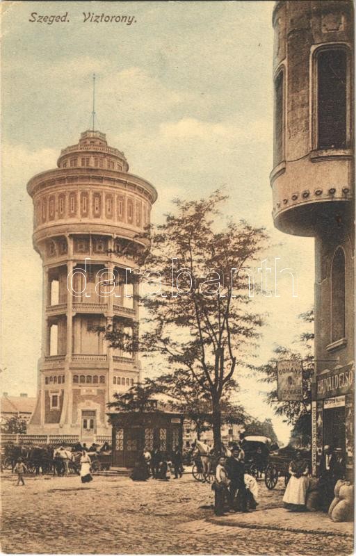 1919 Szeged, víztorony, piac, Hajnal Dezső dohány és szivar üzlete