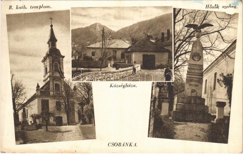 1942 Csobánka, Római katolikus templom, községháza, Hősök szobra