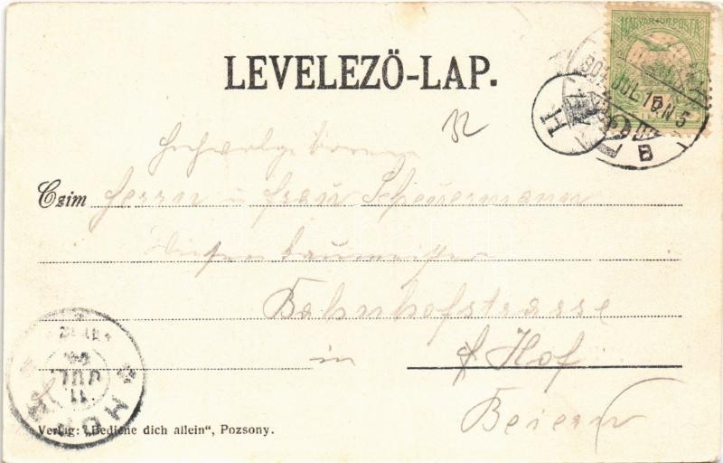 1904 Pozsony, Pressburg, Bratislava; vár, régi ortodox zsinagóga. Verlag "Bediene dich allein" / castle, Orthodox synagogue (EB)