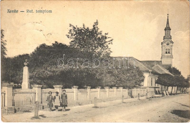 1921 Tenke, Tinca; Református templom, szobor / statue, church (EK)