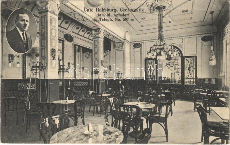 https://www.darabanth.com/en/385-Online-auction/385.0/Postcards/Ukraine~500069/1916-Chernivtsi-Czernowitz-Cernauti-Csernyivci-Cafe-Habsburg-interior-Inh-M-Apisdorf~II2302748